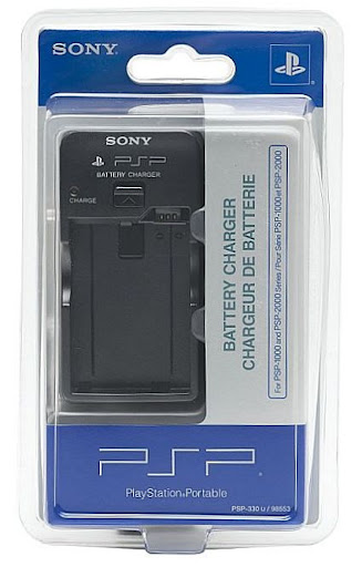 A Sony vai lançar um carregador externo para as baterias do PSP. O novo carregador funcionará tanto com as baterias do modelo antigo, quanto para as novas baterias para o PSP Slim, a bateria magrinha e a gordinha de alta duração. [PSP Fanboy via Kotaku]