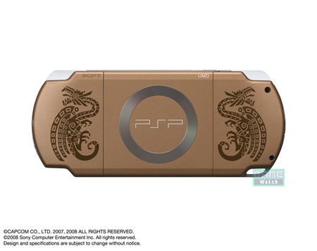O novo PSP bundle do Monster Hunter sai dia 27 de Março por ¥25,800 (US $243), e além do PSP Slim de uma cor especial e com desenhos inspirados no jogo, também vem o jogo claramente e uma fita de prender o PSP no pulso e uma capa protetora para PSP temática do Jogo.